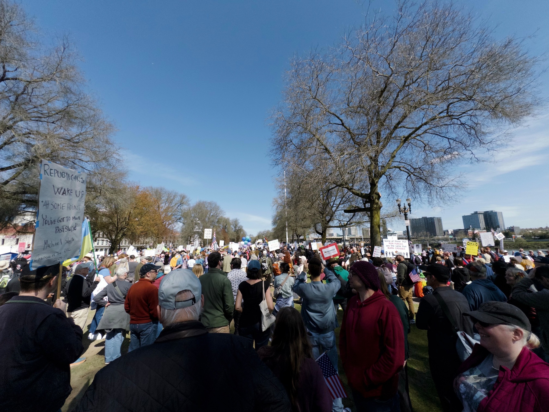 No Kings Day Portland. OR. Down by the river. Big, peaceful crowd.