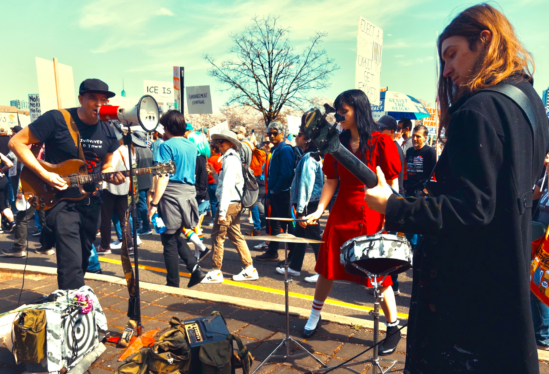 This band was playing as we walked to the Steel Bridge. Great punk performance. Hats off to the drummer playing in heels. 📷